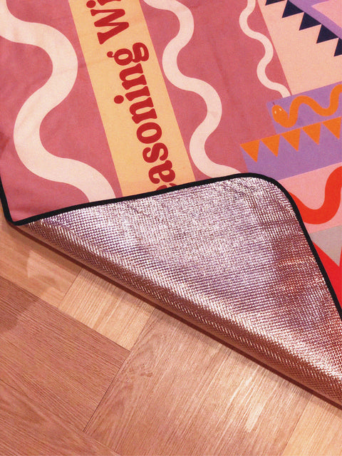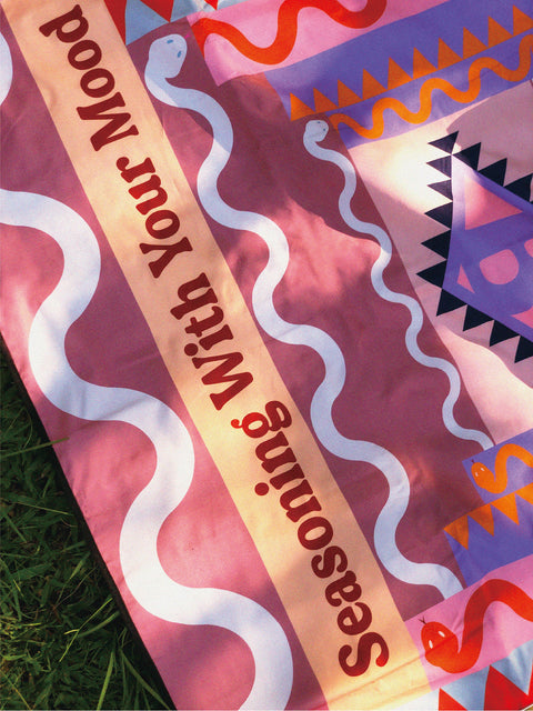 We've stepped outside the realm of coffee this time and designed this super cute picnic mat as a grand opening surprise! With a snake-themed design and bold pops of color, this one-of-a-kind picnic mat is both beautiful and photogenic!